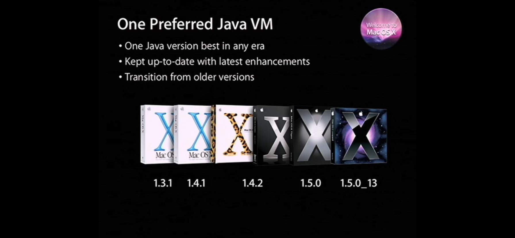 | 10.5 | Java for Mac OS X 10.5 Update 1 | 1.6.0_05 | 1.6.0_05-b13-120 |