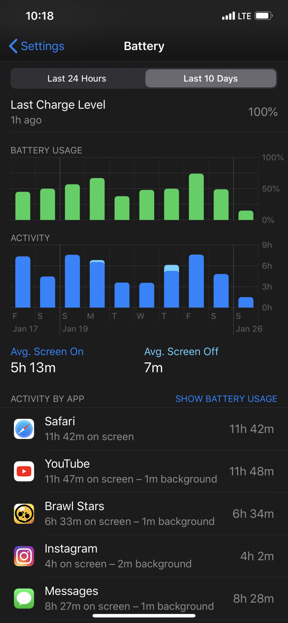 I want to see what battery and usage is like in the real world. Take a screenshot of your battery and usage chart for the last ten days. And post the phone model and specs.