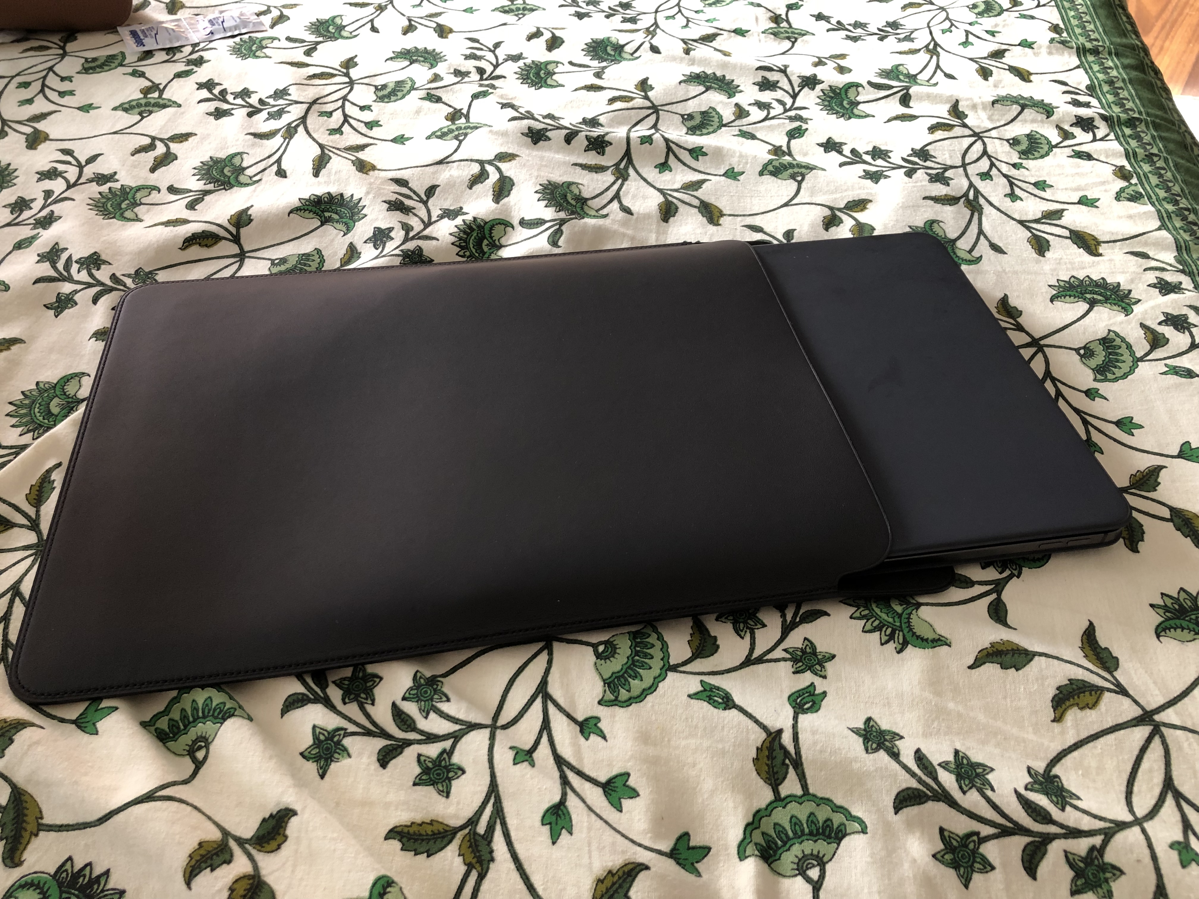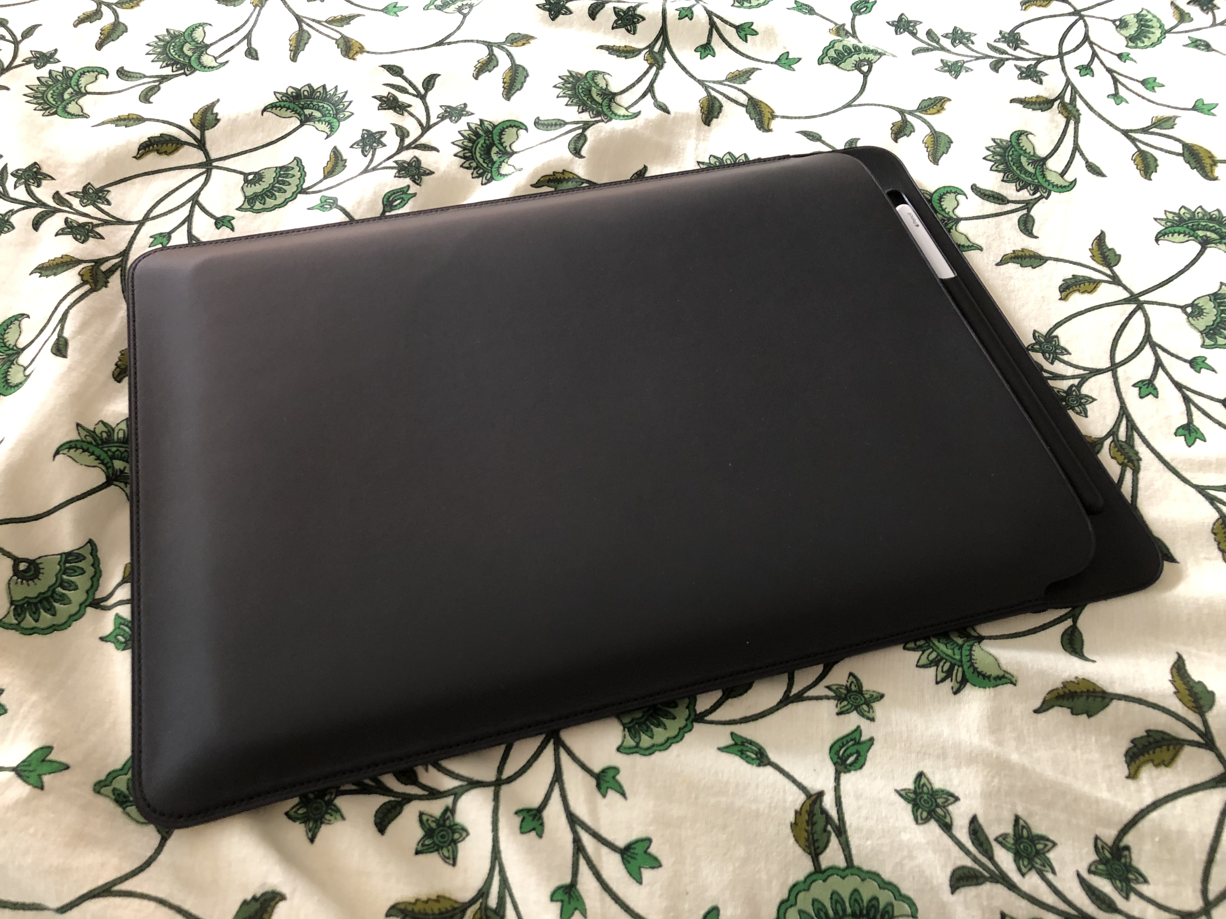 I snagged a bargain (25 pounds) from Curry’s for the now discontinued Original Apple Leather sleeve for the 12.9 iPad with the home button. Turns out it fits the new 12.9 2018 iPad Pro with the Apple keyboard snug.