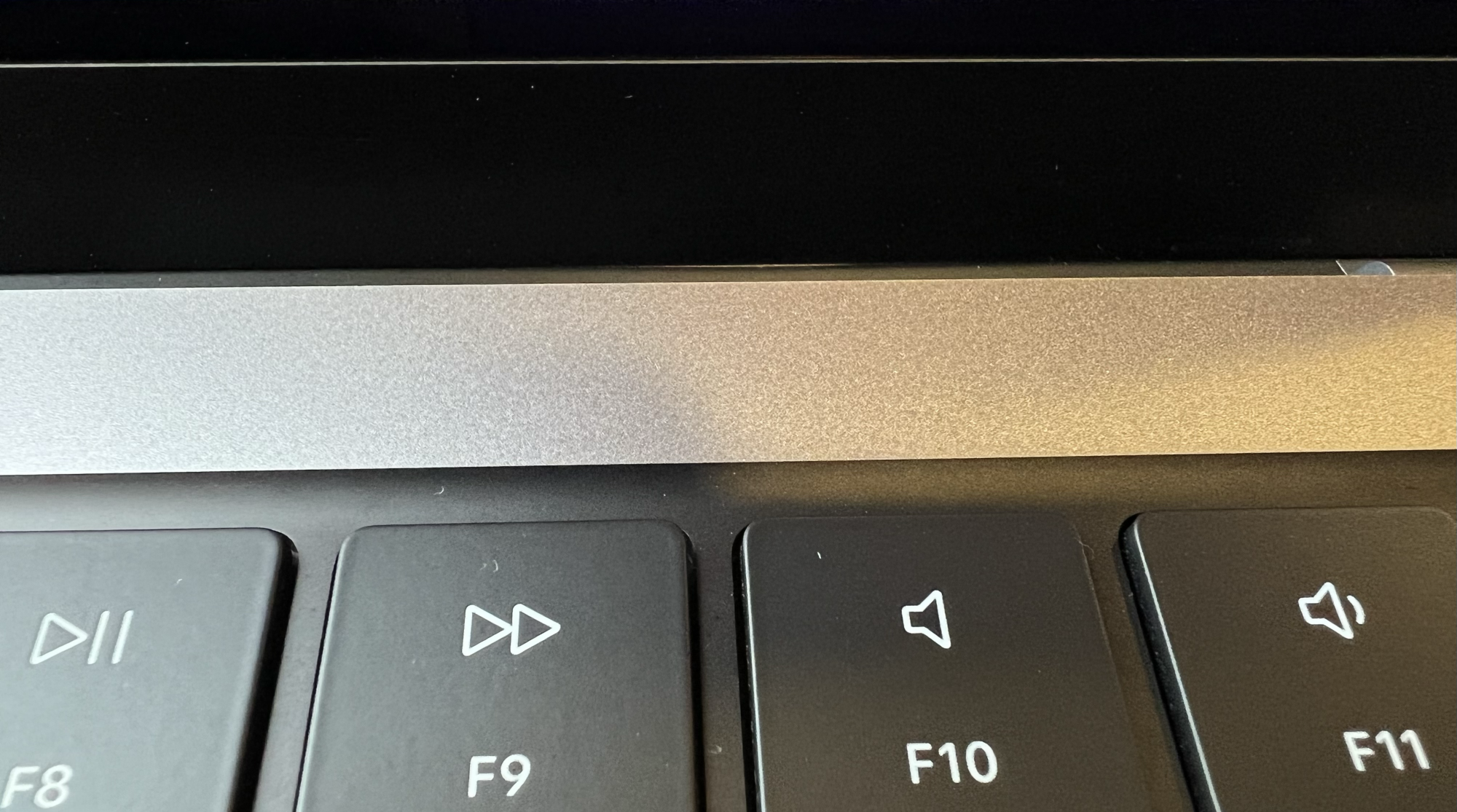 I finally see what everyone is talking about...I had to look down at an angle to catch it but mine does have this slightly between the F9 and F10 keys. Honestly, I never noticed it until now and don't see it in normal usage so I have no intention of returning over this but for the record, mine is a launch day model 14" base.