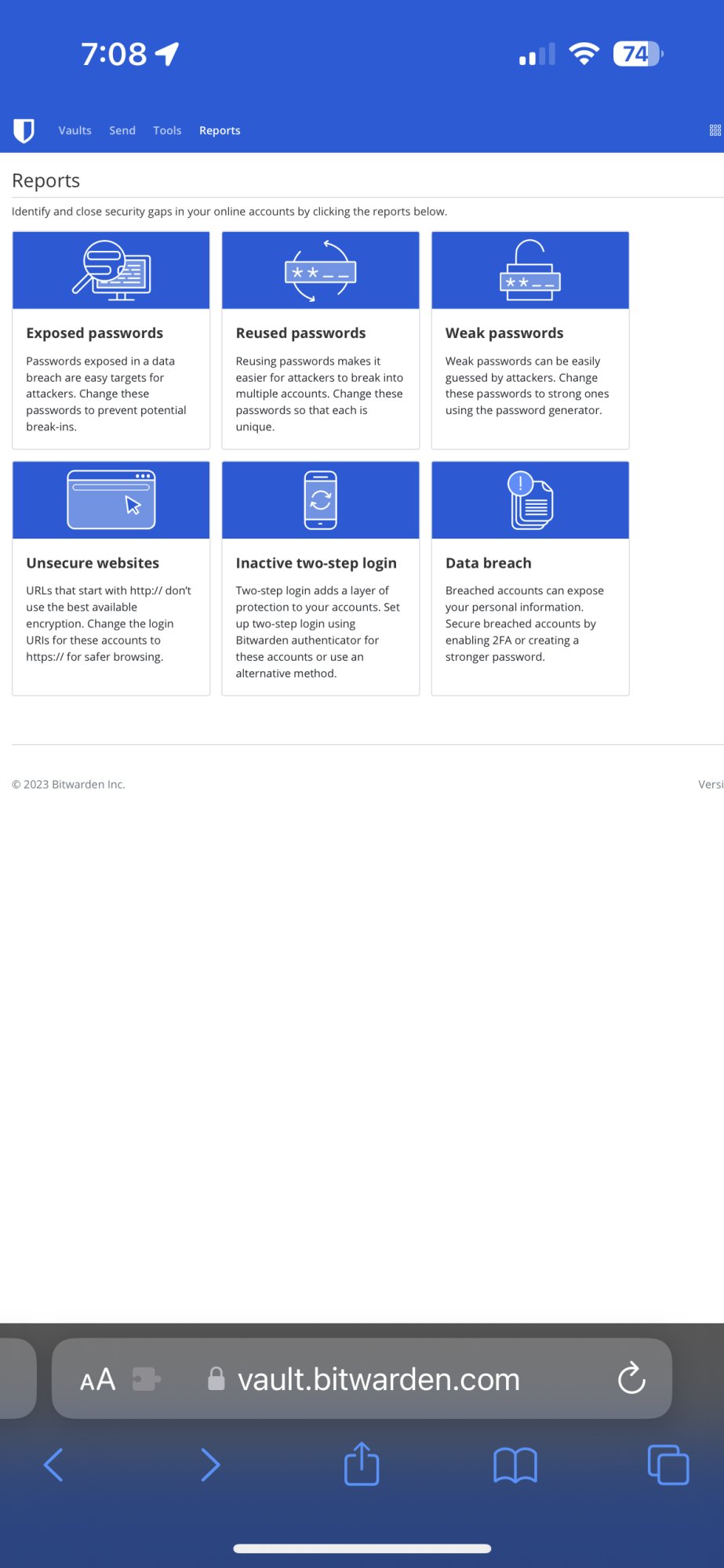 Yes, but the app doesn't seem to have that reporting feature, and I rarely log into the website. I think you need to have those reporting tools at your tools at your fingertips.-Looks like Bitwarden indeed does not have a feature to check the strength of the password but the general rule is 4 random words