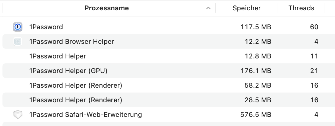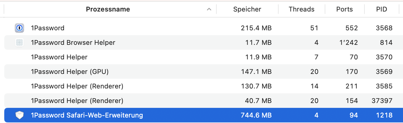 Why is your 1PW extension is 700MB in RAM? Others posted here showing 1PW with the assistant running is around 170MB IIRC