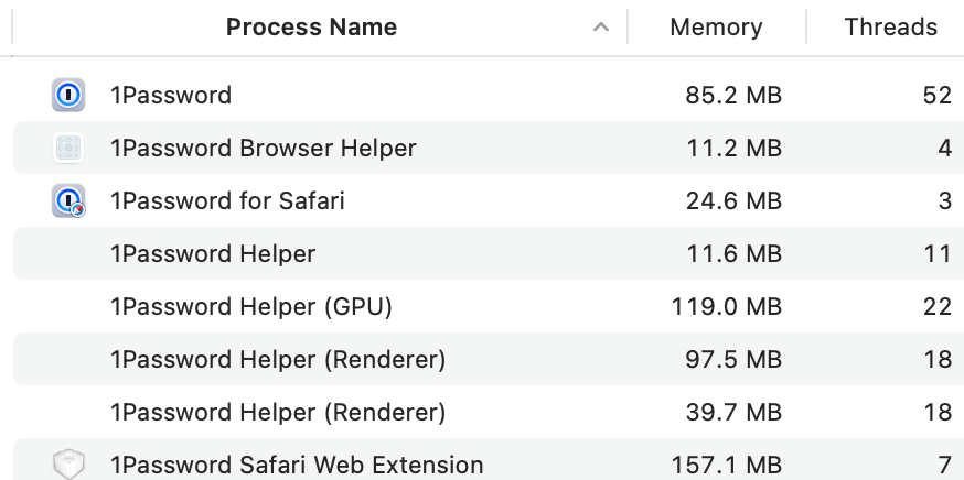 you are not wrong to say from a user experience POV , has 1password RAM usage hindered your experience? I would imagine the answer is no. Currently I am running Firefox I think its taking 1GB altogether and my system is flying for all i care, its 8GB RAM 2015 MBP