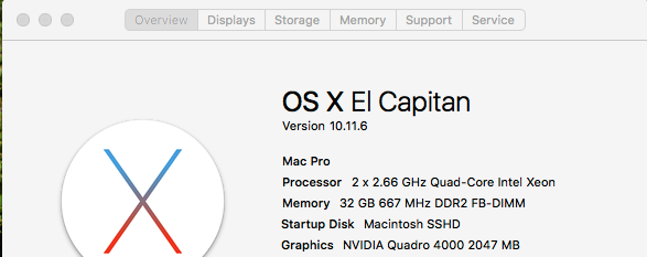 Don't you have to download the drivers for Nvidea cards? Not sure if this is the issue but I recall somewhere that Radeon drivers were included in the OS but not Nvidia.Not sure if anyone can help... Been running El Capitan for a while on my old Mac Pro 2.1. Only problem has been that I replaced the graphics card ages ago with a non-flashed card so have never had the boot screen. Decided to update the graphics card and bought a genuine Mac Nvidia Quadro 4000 and installed it but I still do not get the boot screen on either video port.