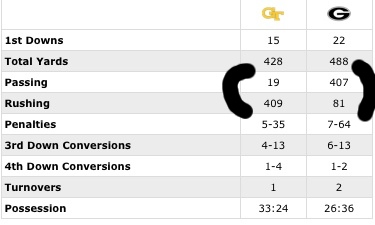 lol i love the reversal of stats by the two teams in regards to rushing and passing