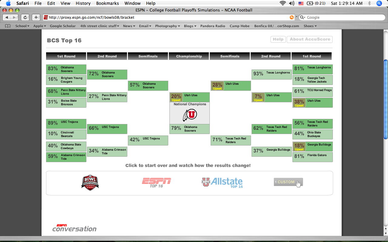 To all of those interested, I created a MacRumors group on the ESPN College Bowl Mania contest. Since non of our teams are paired in bowl games, we get to settle the trash talking by showing how much we know about football ourselves.