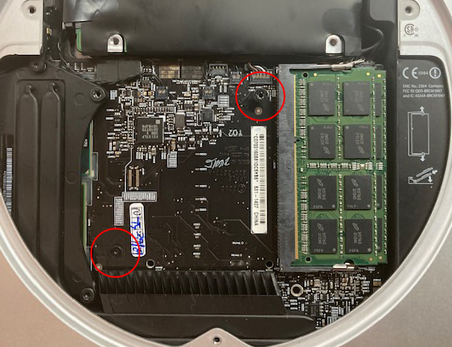 Trying to take apart my old mini. Hung up on the 2 little holes that need a special tool. Posting a link of ifixit and step 13 that describes it. I know I took this apart many years ago to upgrade the hard drive but can't remember how I did it without the special tool. I put a small flat tip into the hole and it doesn't seem there is anything on the bottom. Appreciate any help on this. Thanks.