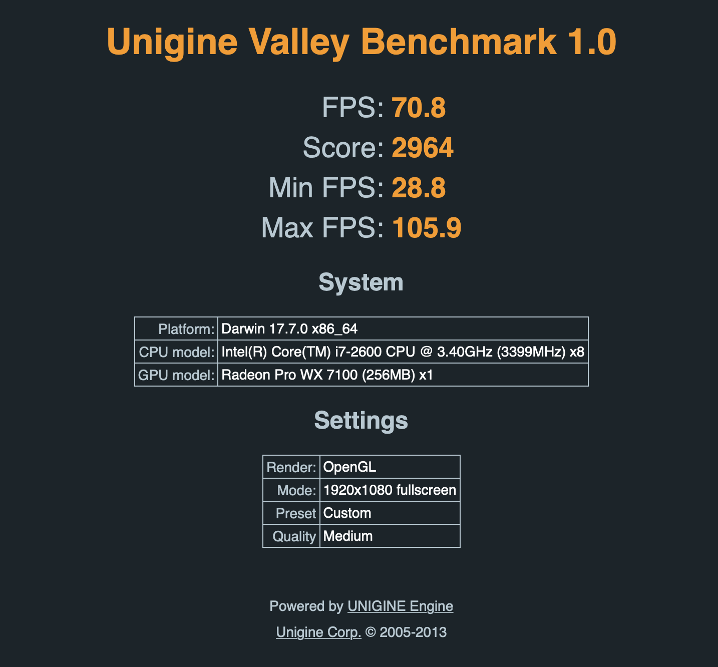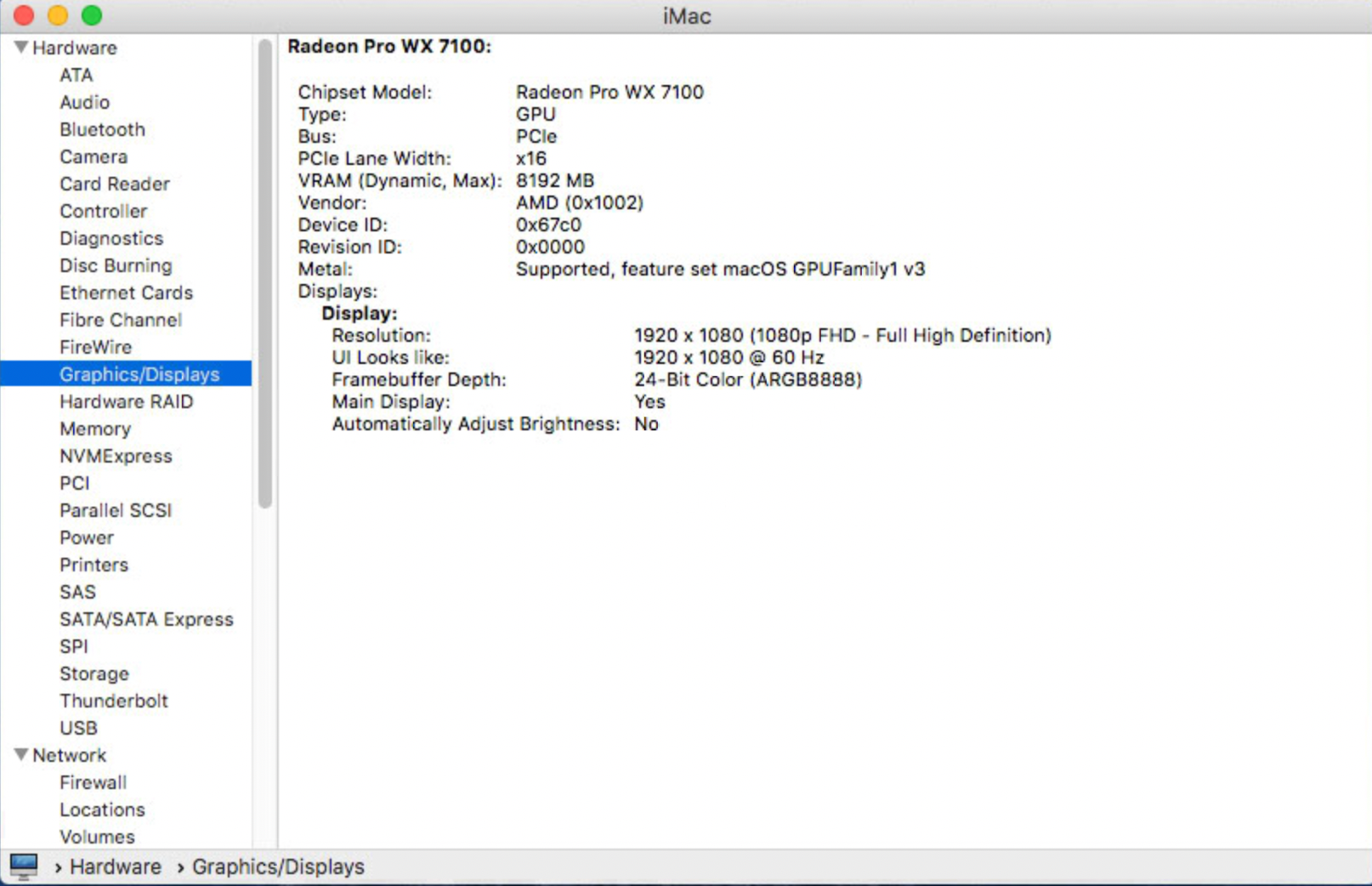 Unfortunately, I am still getting the black screen on startup. HOWEVER, I am now able to SSH in from my other Macs. Through this, I was able to obtain the following images which show that the video card is properly recognized as a WX7100.