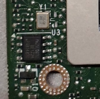 This is a SOIC type chip and really not the normal case. All unmodified K3100M I saw (at home) and in online offers had a WSON type chip. Only a single Chinese eBay reseller offers these "modified" cards (advertised as "new"), had two of them, both did not work or only with artifacts, cards returned. Still waiting for the refund of the second card!