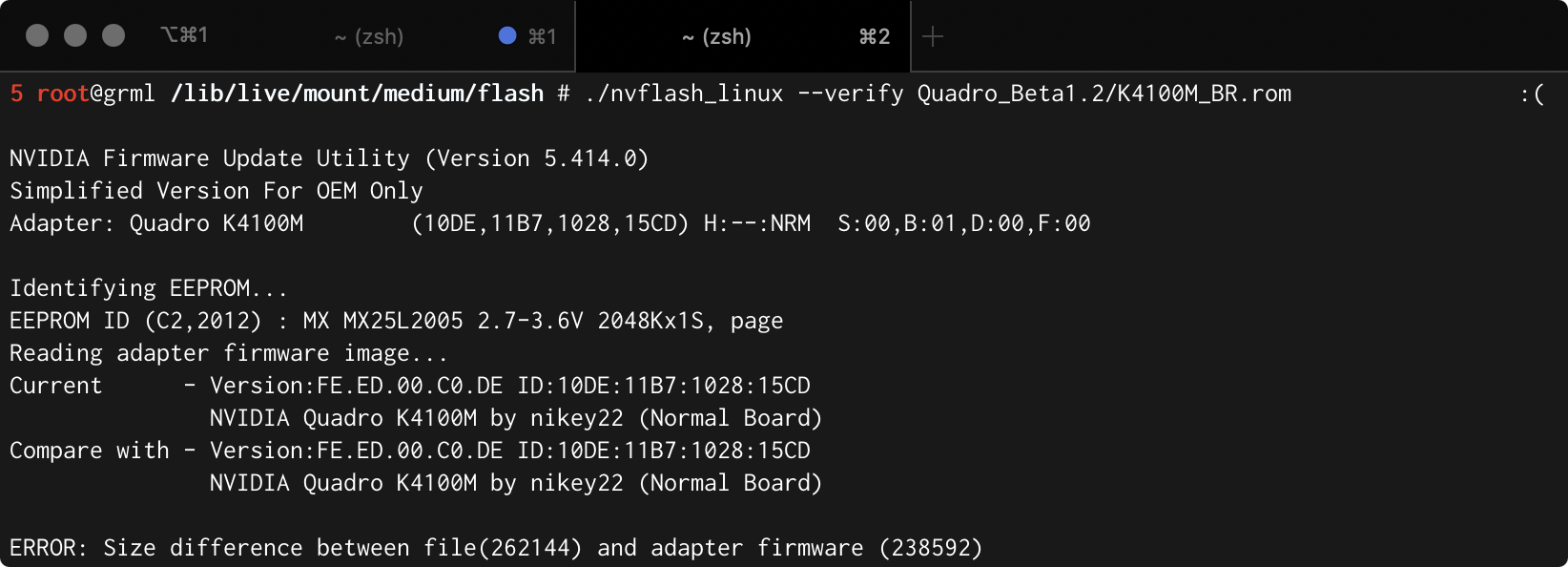 3. Create GRML USB stick and flash card (in my case a K2100M) with NVFlash.
