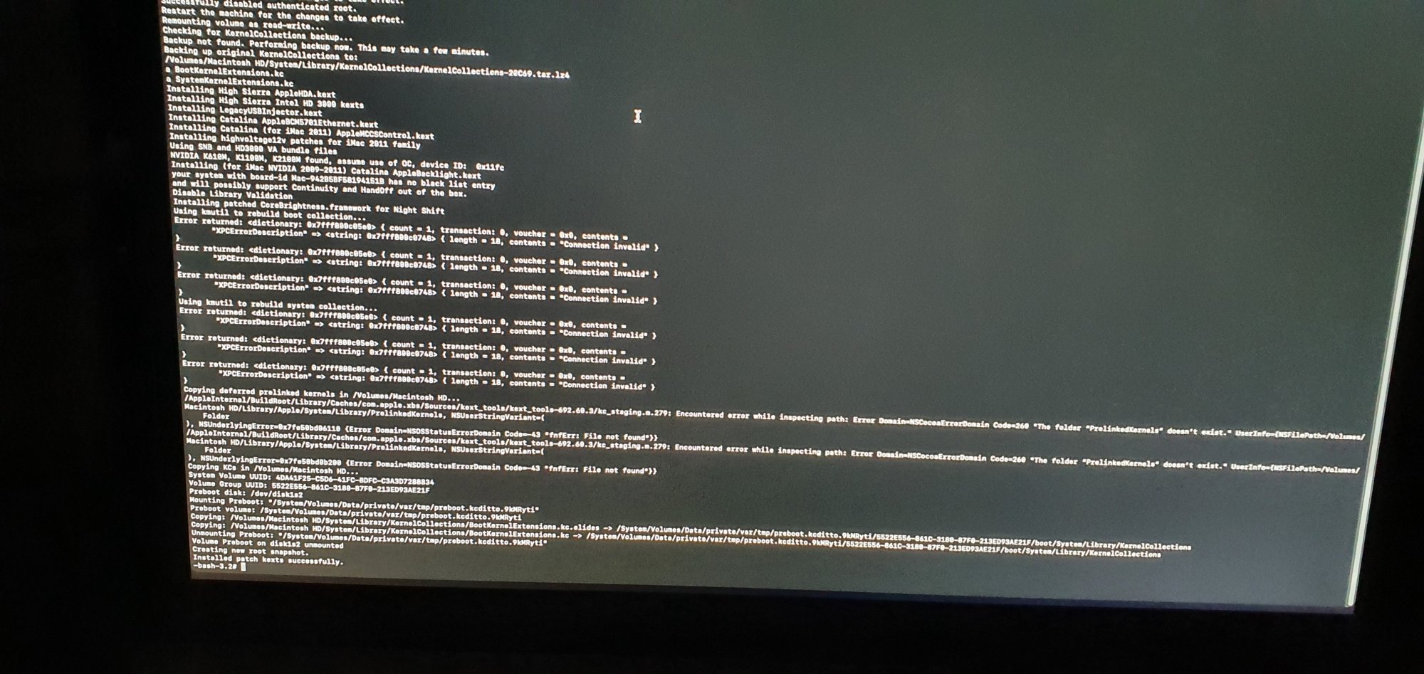 Ok...so it failed again. I don't really have any idea why this doesn't work. I will try to get an older Big Sur installer, maybe that will help (I used one I got from Appstore on my Macbook Air 2019 so it's the newest one).Then restart from the scratch - the 2011 does not need OC to boot. Only AMD or some Kepler GPU for brightness control.