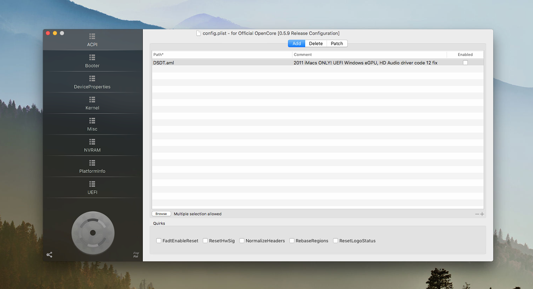 Thanks! Got it... Now the issue is that I downloaded OpenCore Configurator to enable the DSDT audio patch, but when I turn it on with the nvidia config.plist I get a stop code ACPI UEFI ERROR. Hopefully it's because I have the AMD card installed? I tried with the AMD config.plist and I got an ACPI BIOS ERROR stop code. Sorry for all the questions! The boot process seems much faster than when I was on BIOS mode, and I also dropped the Timeout from 10 to 5 seconds.