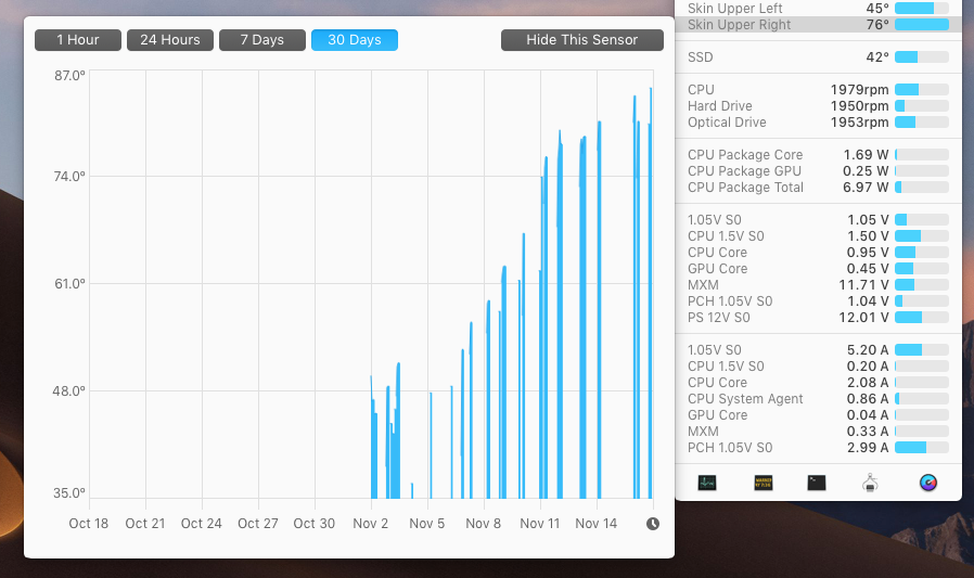 After several hours playing CS:GO, 3D modeling, CUDA processing... it never goes over 70º. At idle it's about 45º to 50º. It could be even lower but I try to set the fans as lower as I can