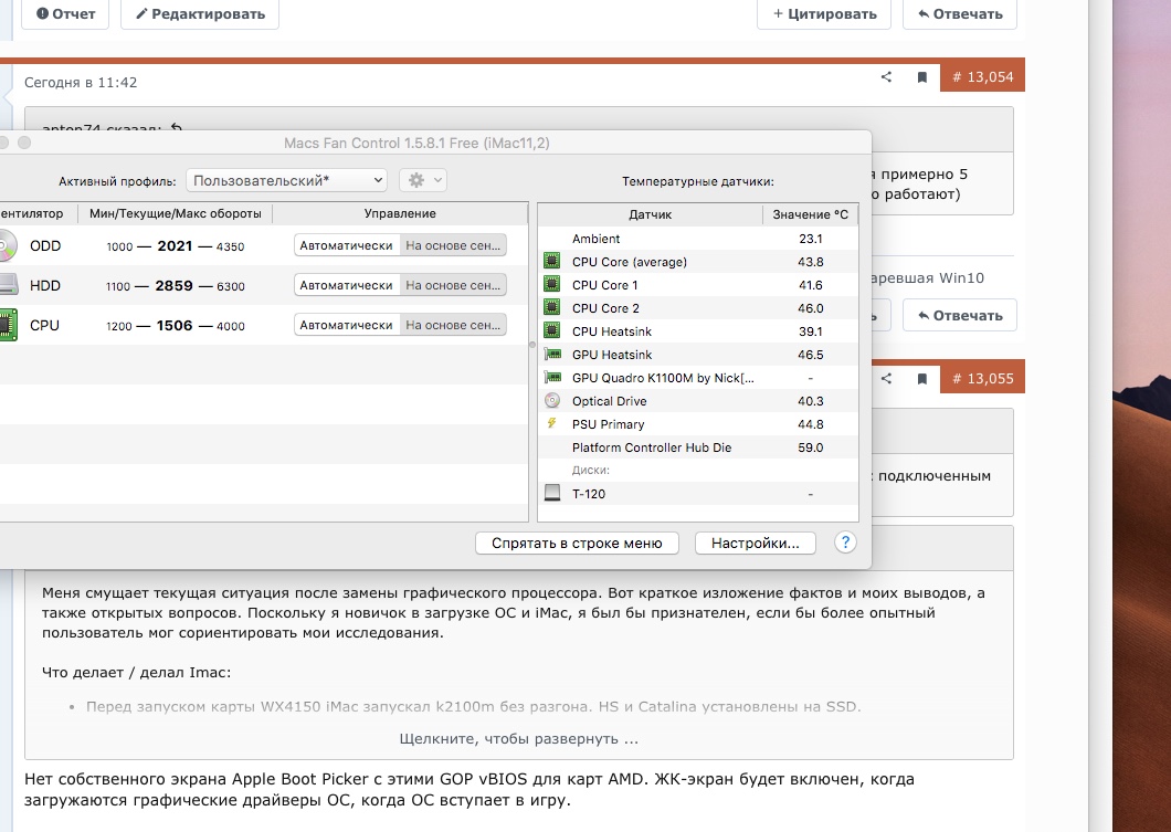 - Before running WX4150 card, the iMac ran a k2100m w/o OC. HS and Catalina installed on SSD.