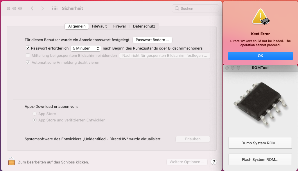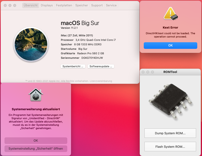 Romtool works on Bigsur? because I have an error message (kext error).