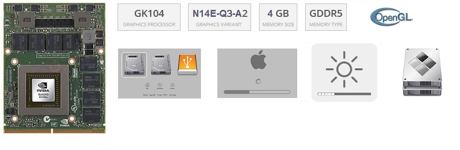 Replaced the GPU for an K1100m board, which went fine. Worked in HS natively, no bootscreen nor Brightness.