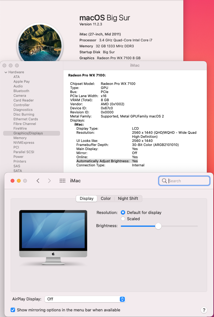 I'm working on two stacked 2009 i7 11,1 iMacs, and the goal is to run them eventually on Catalina/ Big Sur.