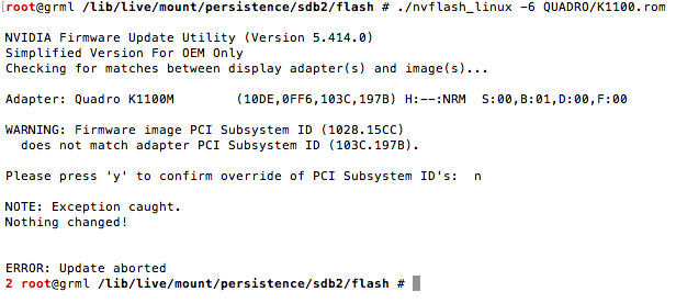 Cause: knocked off component on the logicboard. This occurred when I shaked the heatsink to remove the MXM card.