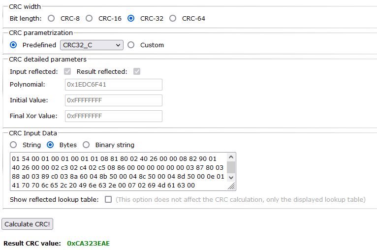 Let me give you an example of a Thunderbolt DROM found in an iMac 2011, 21.5" that uses CRC-32C and not CRC-32: