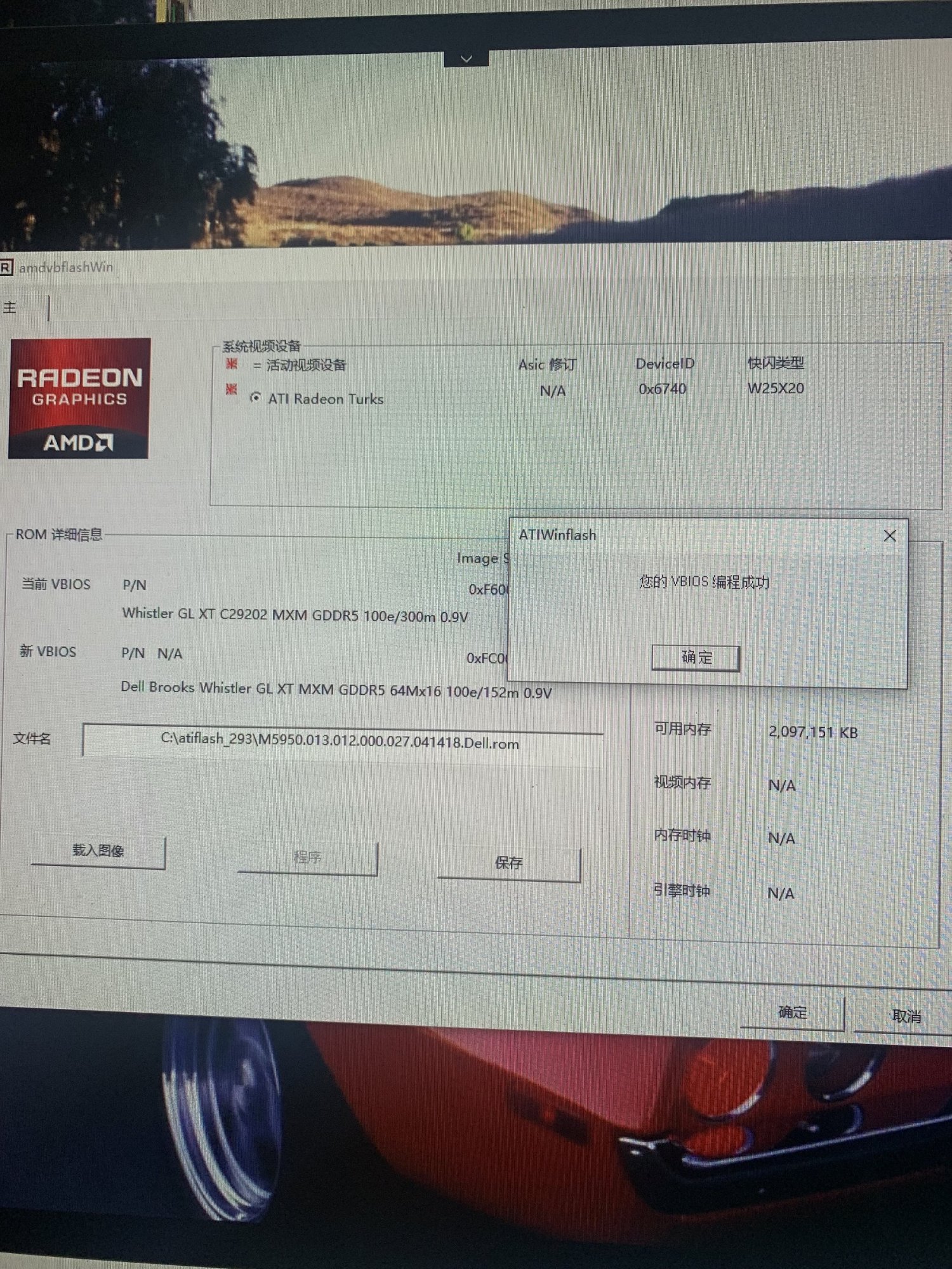 Hi @internetzel Using amdvbflash graphics tool with CMD command to refresh Dell original M5950 HD6770M shows programming success, test GPU-Z tool shows VBiOS information is still blank no correct reading of VBiOS information written by programming. I guess it's still a hardware problem.Did you try to flash using amdvbflash?
