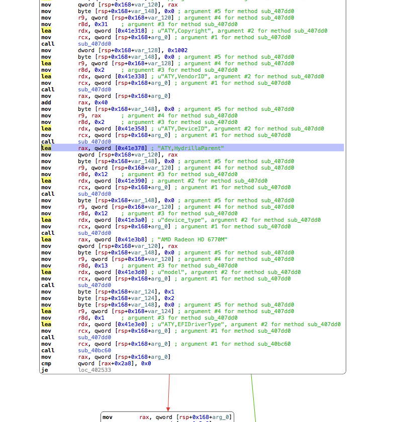 As @internetzel mentioned previously, there is more than GOP to get bootscreen we believe. For example, EdidDiscovered & EdidActive protocols. These are protocols that are installed for each video output device child handle that is physically connected to a GPU controller (including eDP LCD port). Edidactive works when the screen is turned off (sleep mode), we want the EDID information to still be active in memory in the pre OS environment and post OS environment. Are these protocols in the C code for a HD6000 driver? Maybe? Decompiling to C code is sometimes inaccurate and some programs do a "best guess". But maybe we could find the location in the HD6000 drivers, look for "GOPDriverBinding -> Start ()"