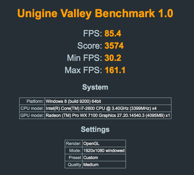Without bootloader: MacOSX 10.13.6: Valley - Score 2976, FPS 72.