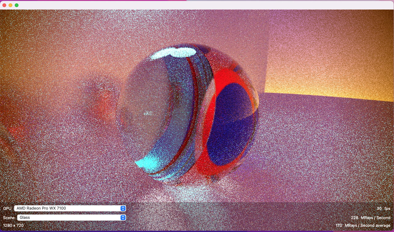 MetalBench: ~170 MRays/s.