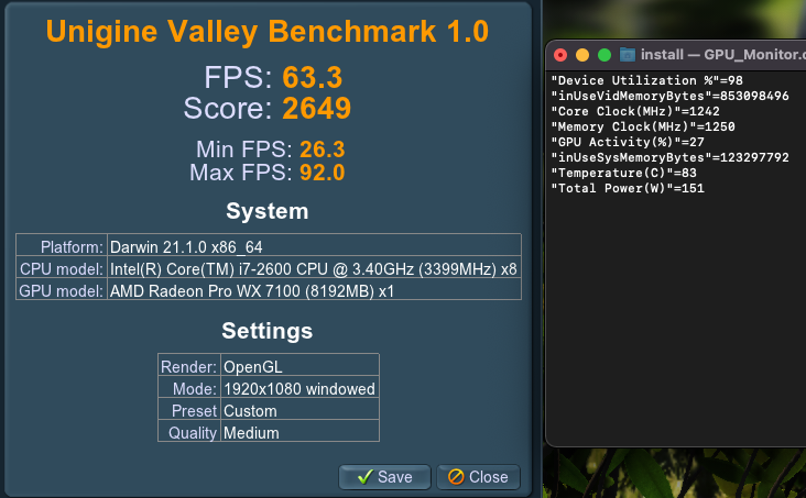 In the Big Sur and Monterey system, the results are the same. Absolutely identical. I am surprised that OpenCore reduces FPS in the Big Sur and Monterey ~1650 Score system.