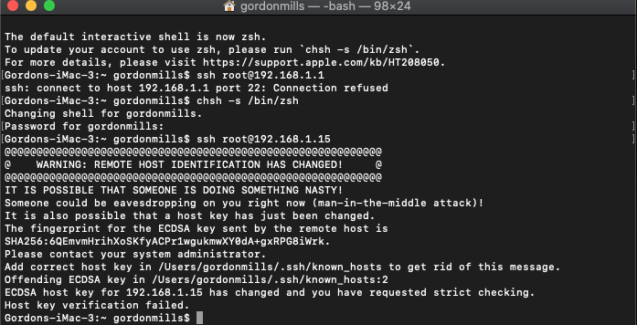 I'm trying to ssh into my machine using the usual method, except this time I am using the newer version of the flashing software because the older one doesn't have K4100 on it, but when I try to ssh in it won't let me and I'm getting the attached error message.