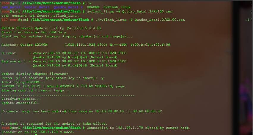 The new graphics (Quadro K2100M) is a life-saver! Thanks! I downloaded the *.rom file, just not sure how to flash it. I only have this Mac to play with (no additional linux or raspberries around). Are there any instructions how to do it?