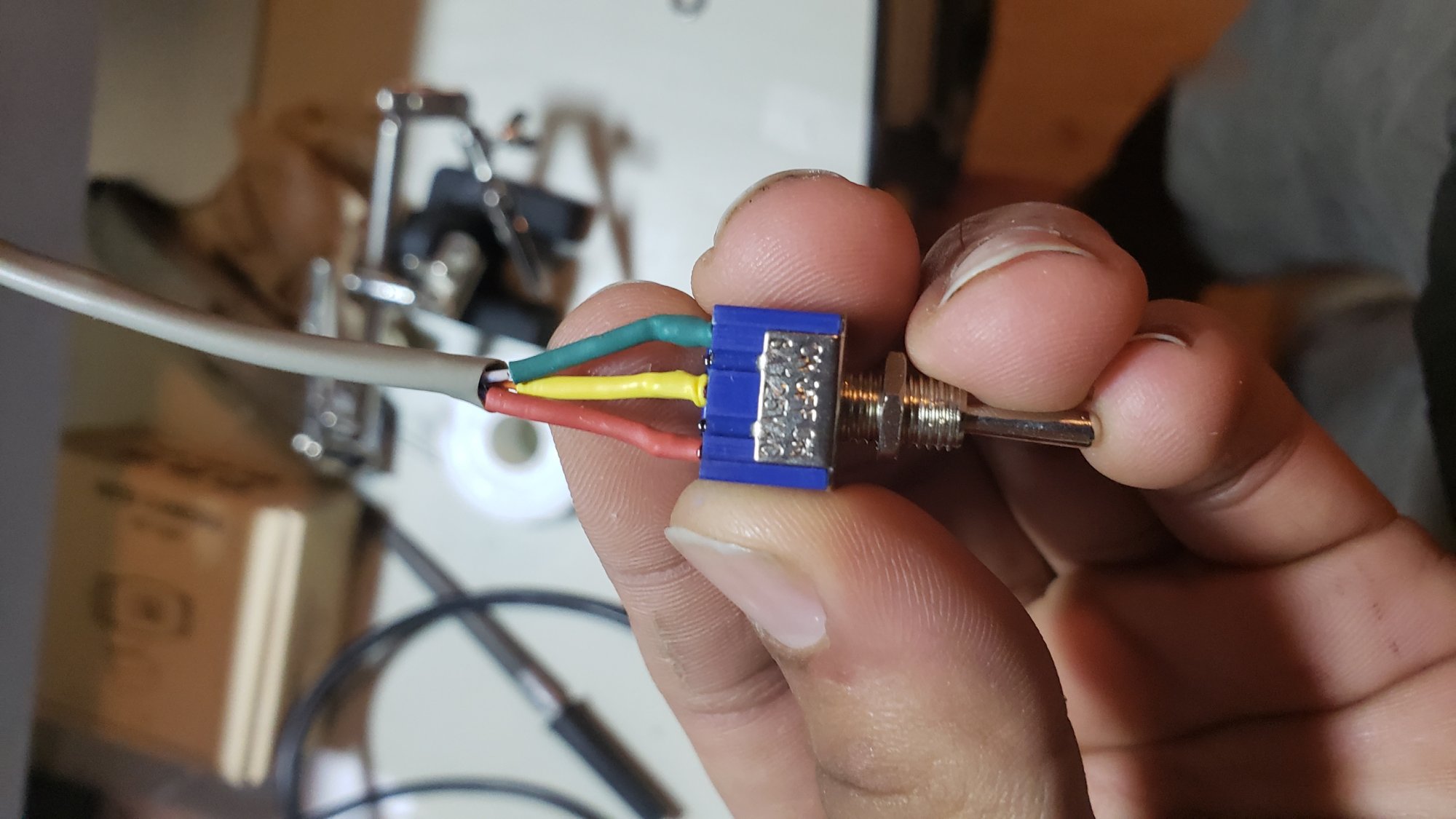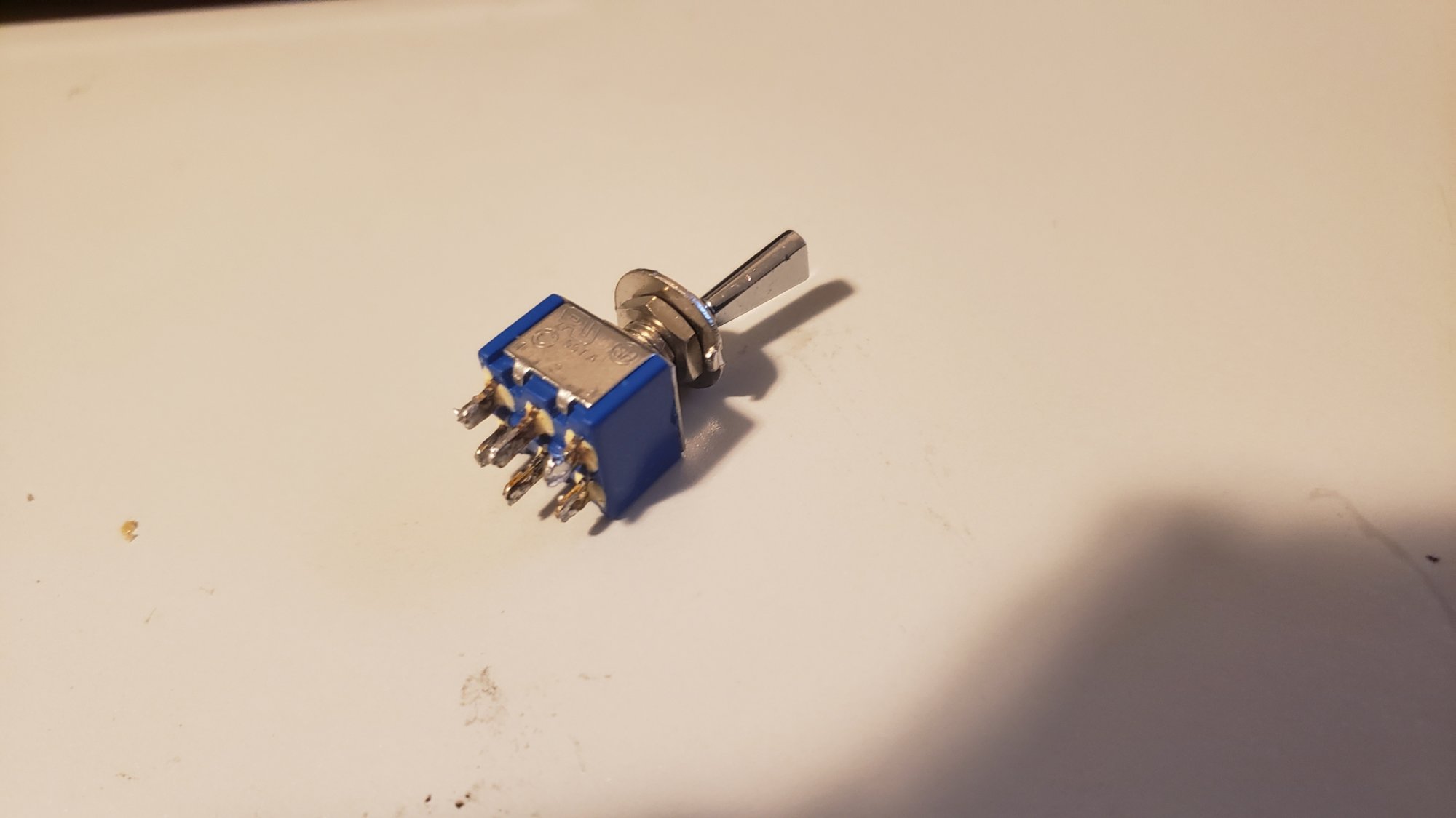 Step 4.2 Find a double throw, on-on or on-off-on toggle switch. On-on because in both positions, the switch needs to connect something. In one position, it connects to a 3.3V supply that I tapped from the iMac's PSU, and in the other position, it connects back to the wire that it originally went to. If you use an on-off-on switch, which has 3 positions (a middle position where the wire connects to nothing), you can have a position of the switch where the internal display can be turned off altogether while the computer is running - which for me is excellent because I can leave the computer processing something without wasting power for the display on a task that doesn't need me to keep looking at the screen. I really wish Apple had done that to begin with..... Obviously, this is the type of switch I used.