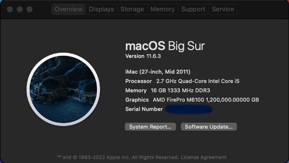 configuration: mid 2011 iMac