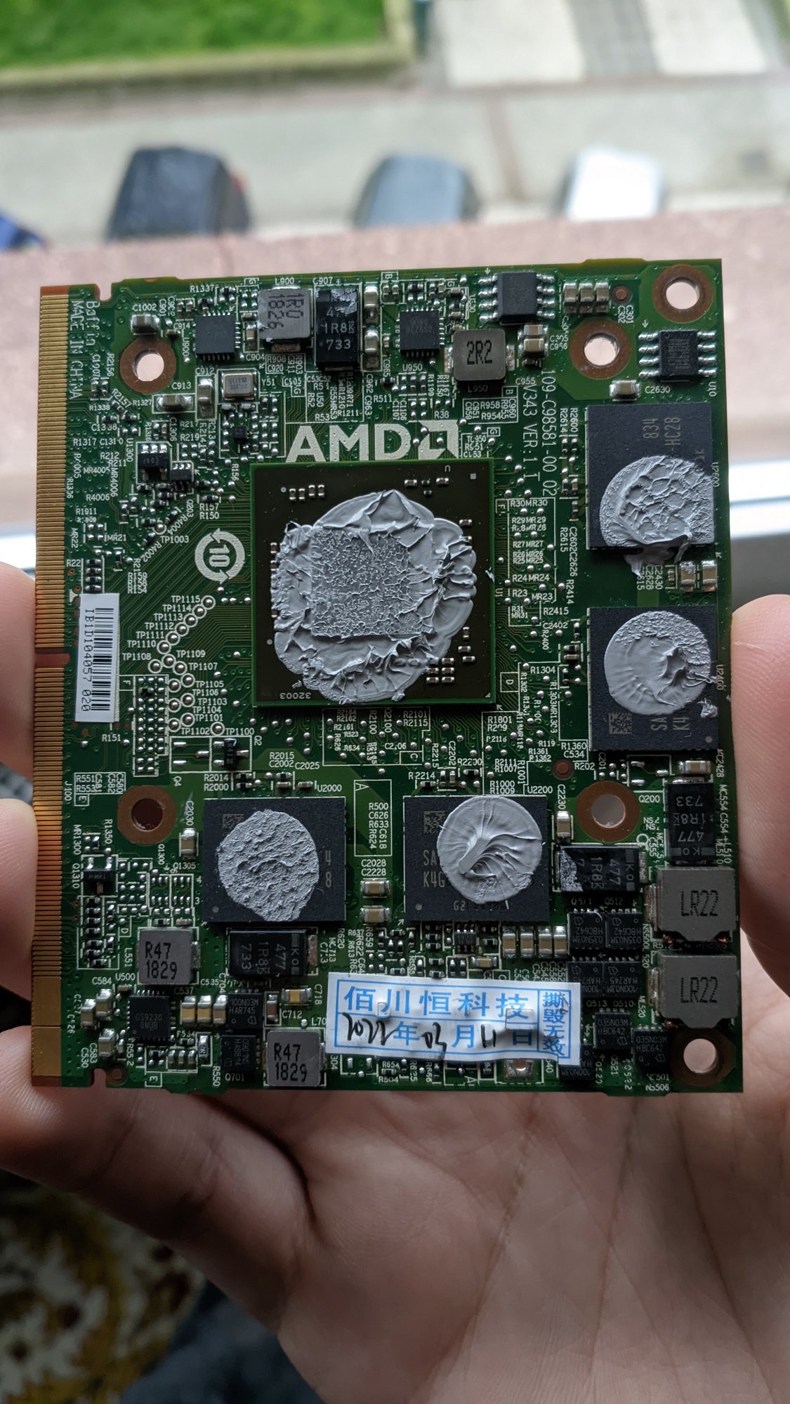 [SPOILER 1 和 2:GPU 卡安装和 VBIOS 闪存步骤 1:交换实际。的,就像这个视频的著名帖子 #1 一样。我的 27 英寸机器巧匠通常有一些程序 MXM A型也面板,而不是面板型,因为是27型的B型标准,最初配备了Radeon HD4670。我的B型WX4130适合全尺寸MXM B型。