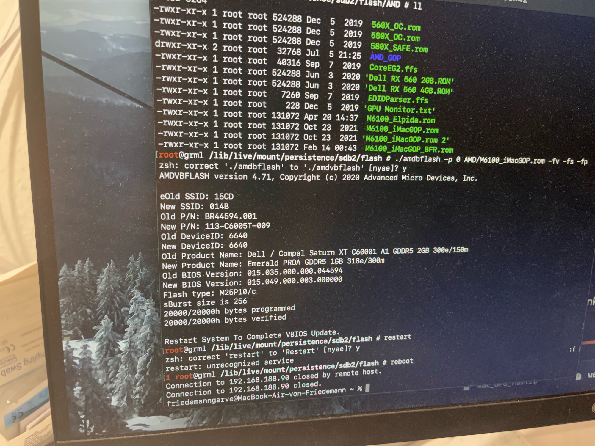 As the GPU had Hynix AFR memory modules, I did flash (by using a CH341) the AFR-related bios created by