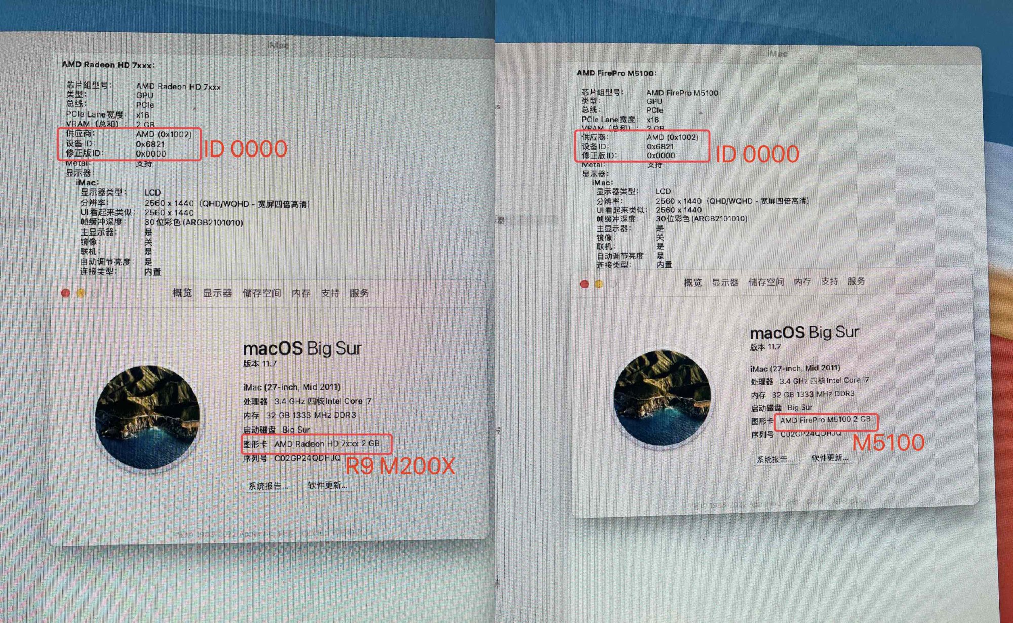 macOS display HD 7XXX corresponds to the windows R9 M2000X driver
