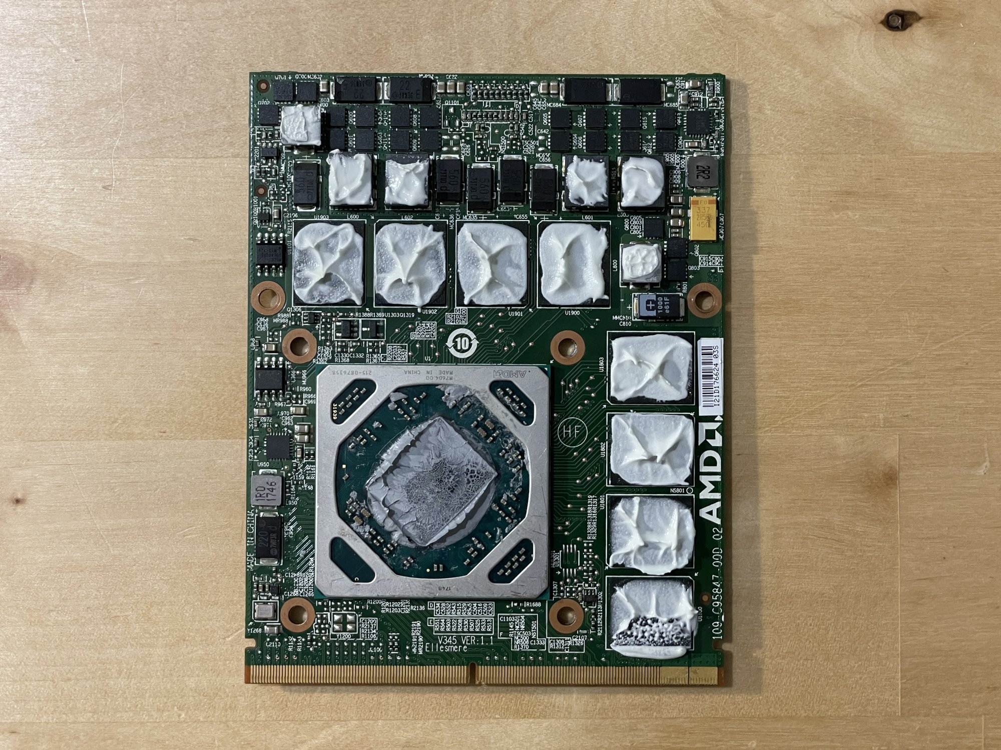 @splifingate. He had to flash the card before installing it. So I did this and used my CH341A. Now the card is flashed with the vBIOS "WX7100-EG2_adj.rom" I found on a famous GitHub page. I saw that on the same page GitHub page there are also two versions of the DXE files, but I did not use them and instead used the ones posted by