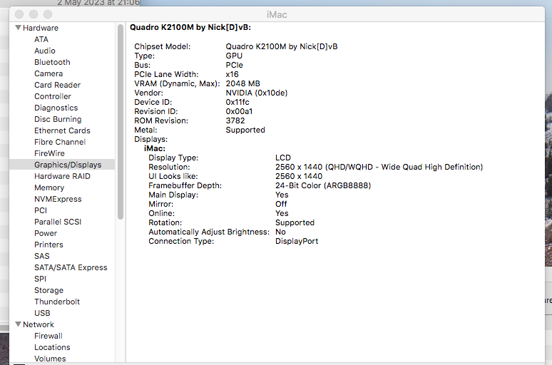Hi your post is interesting - 1st post in the thread gives a dire warning about using this and similar age AMD cards in 2011 iMacs - says PRAM must be reset every cold boot, do not use... Your experience is different? Just asking as I am finally seeing that K2100M which I have installed does not have metal support, and more recent Nvidia cards with metal are not economic for me. These AMD cards seem to have metal and are priced within reach... ThanksI use an m5100 with Ventura.