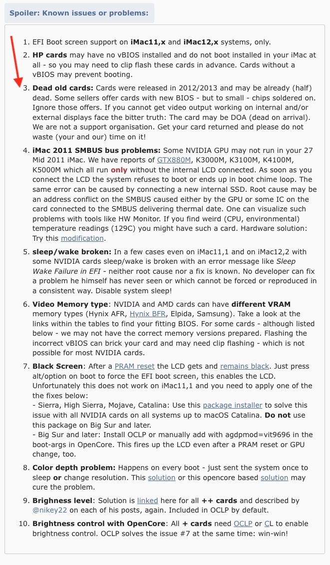Yes, I'm afraid it's number 3 issue. But still black screen with original card. I will try update to high Sierra with another Mac. my iMac uses El Capitan now. I hope that's the problem.Make an Update to High Sierra with additional Firmware Update to your iMac (should be iMac 11.3).