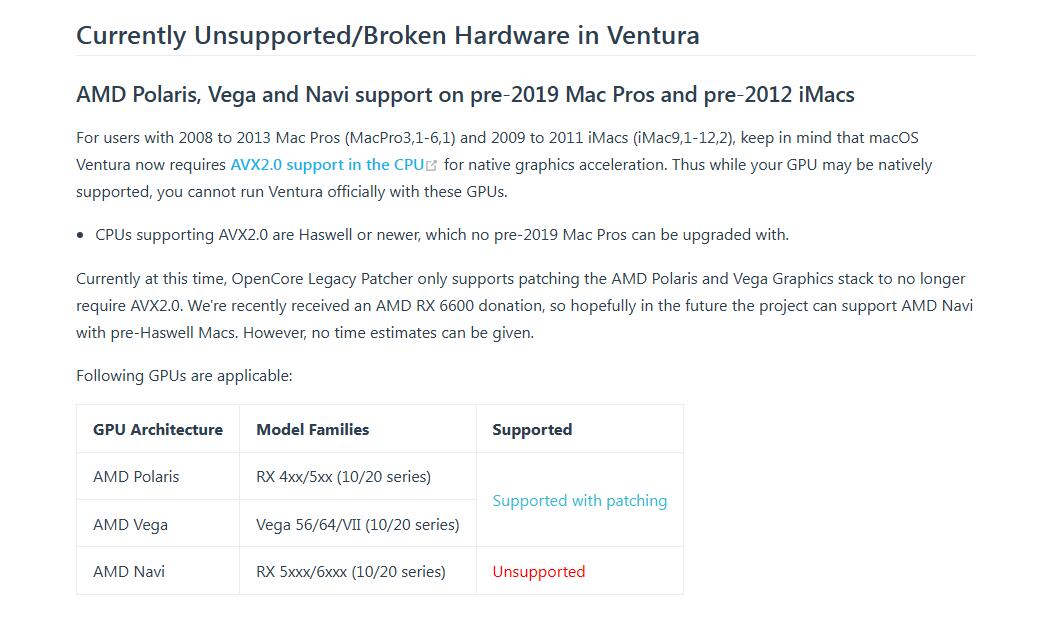 - Catalina 10.15.6, Big Sur, Monterey (no OCLP support on Ventura for NAVI dGPU)