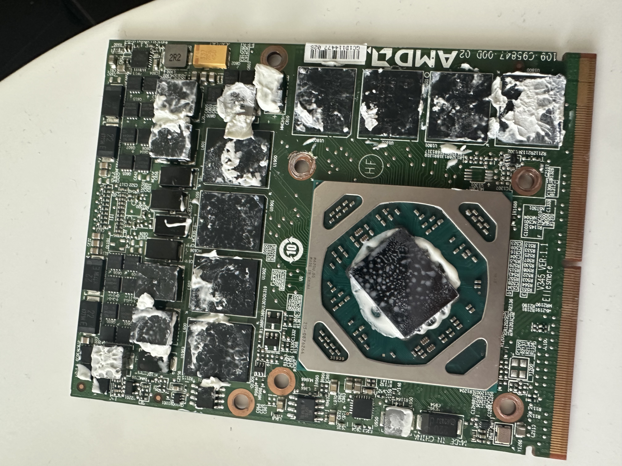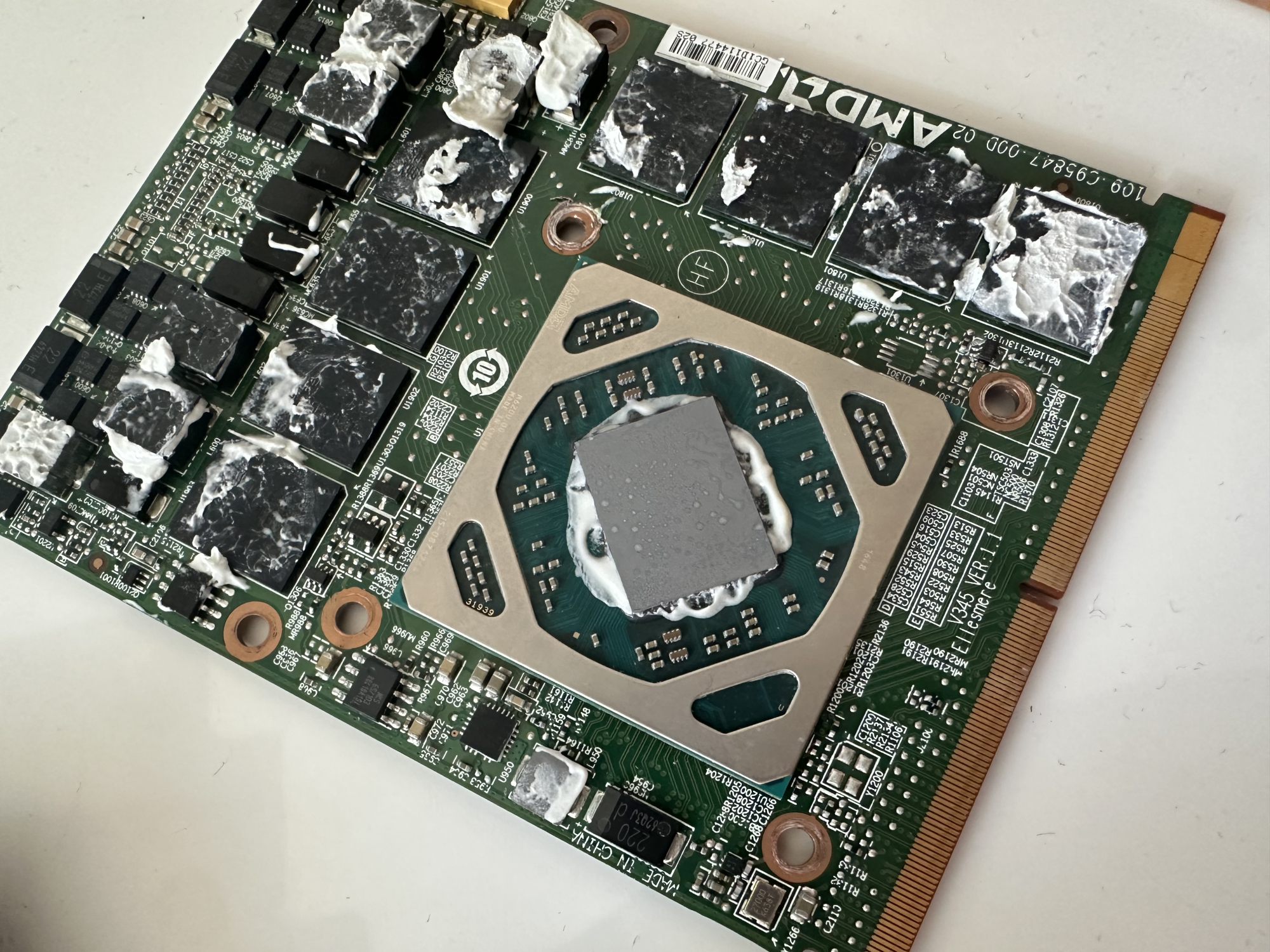 Nick [D]vB WX7100_GOP.ROM file, then traded out a K2100M for it using a 3 pipe heatsink. It is being booted with OpenCore (AMD config), to a previously installed DosDude Mojave; I still need to work out sleep which had been working with the K2100M (Something to do tomorrow).