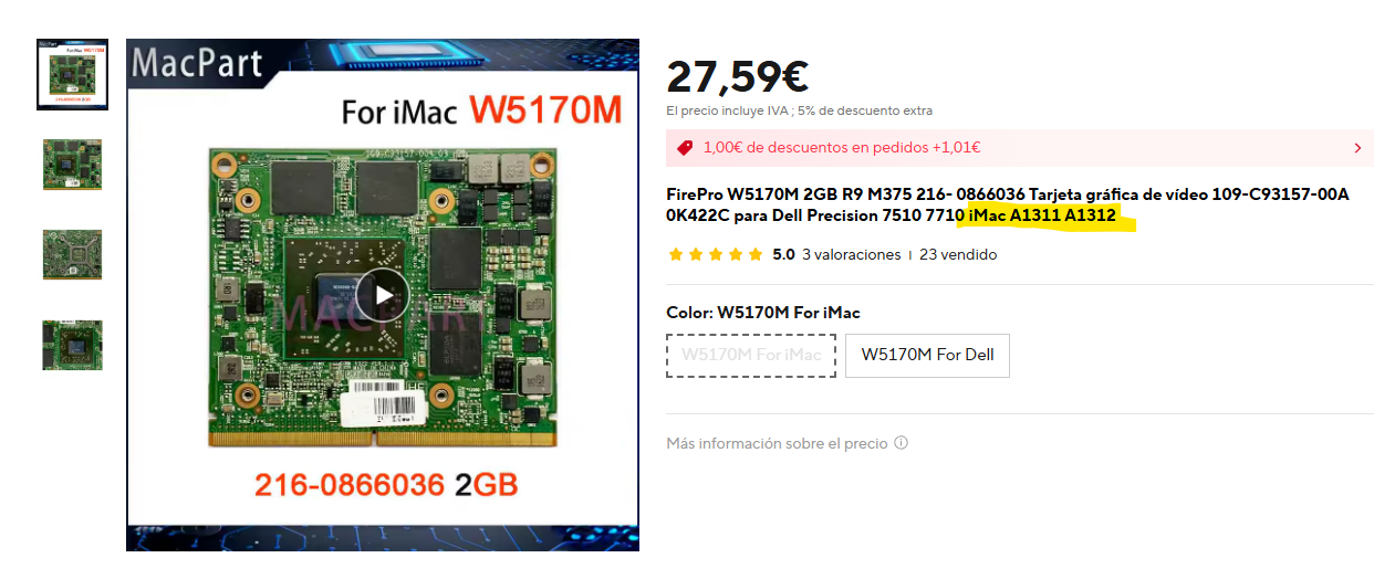 I have a prized mid-2011 (12,2) 27" iMac running High Sierra. I'm comfortable delving inside the iMac; I've already upgraded the HDD to SSD with a temp sensor dongle, the CPU to i7-2600, and am now ready to upgrade the GPU.