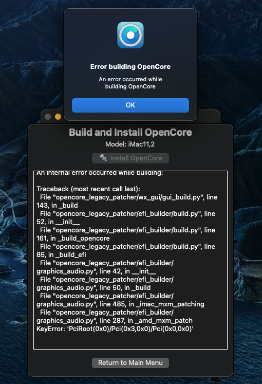 What's more, is I have this OCLP bug (?) which I suspect might be related - no matter what I do, it spits out an error at me when I try to build it in Host Mode (please, see screenshot) it does build only in target mode.