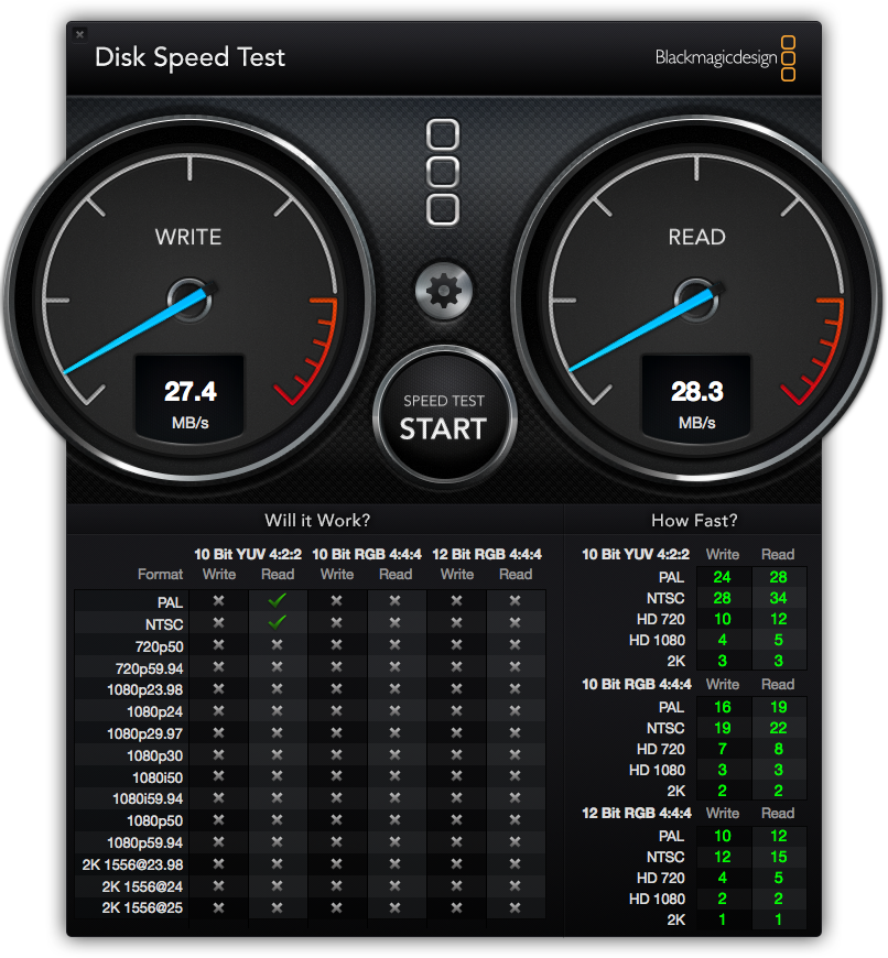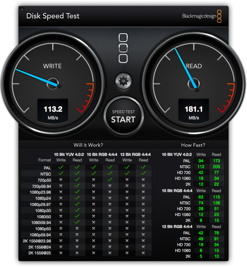 your results will be in this format see thumbnail. my ssd is a sata II with max read writes of 240/210 so my 220/180 is close. I am on a t-bolt connection which does lower speed a little.