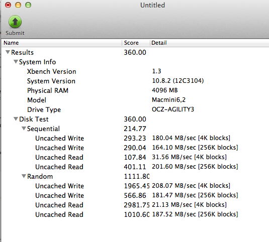 What is the difference between ≈ 500 MByte/s and ≈ 1000 MByte/s in your environment? I doubt that it is a big difference....Ill be doing some music production on it using logic 9 and Ableton Suite. I was wondering what's better, your configuration or Mac mini server 2.6, 16gb, 2 x 256 ssd?