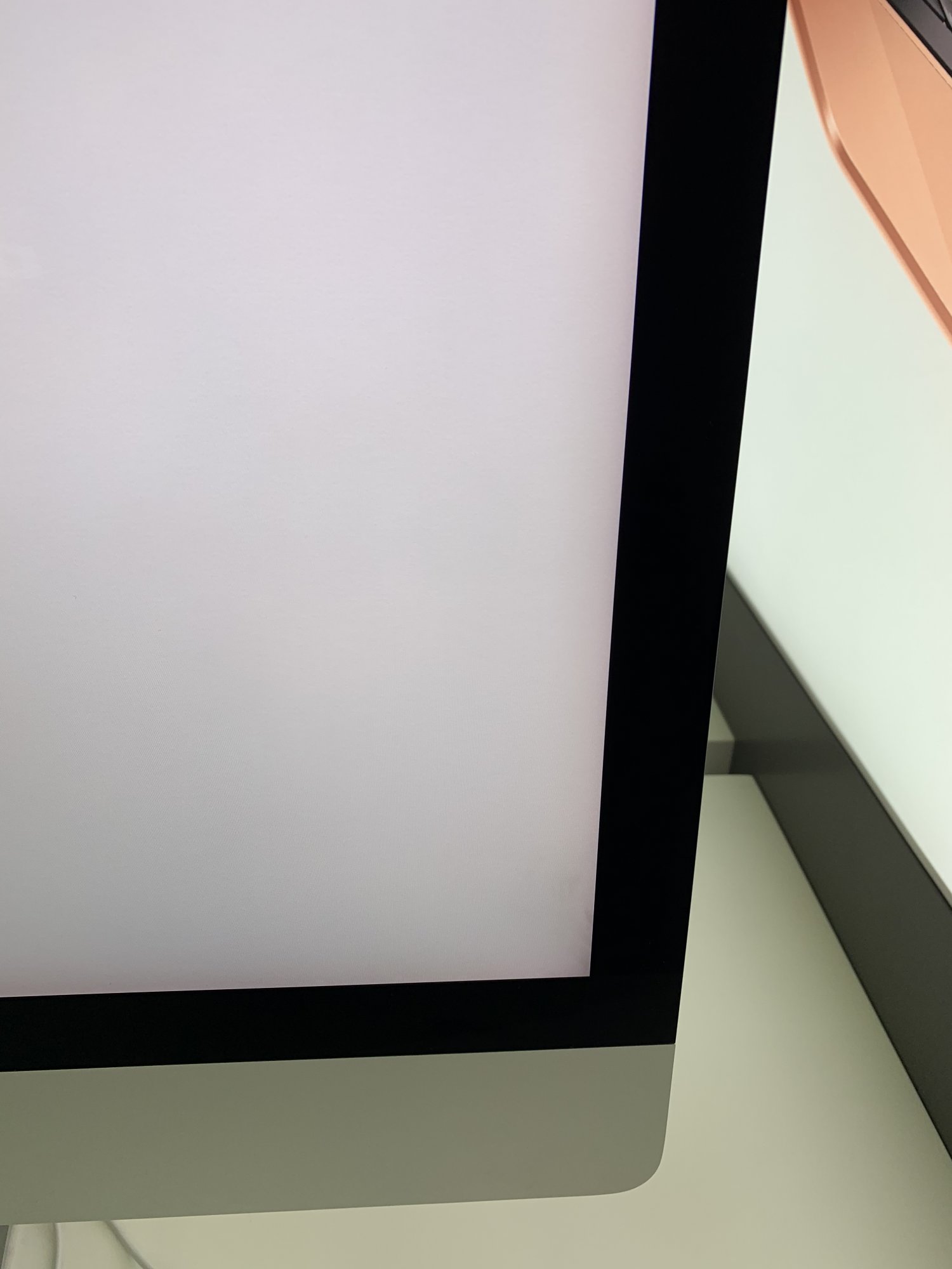 I have 2 sets of late 2015 iMacs with the same defect. I suspect that the diffuser or polorizer of the display panel has degraded around the edges possibly due to the chemical from the adhesive tapes of the back panel. Someone has done a tear down of a 5K display panel on youtube and you can see those parts after 4:35.