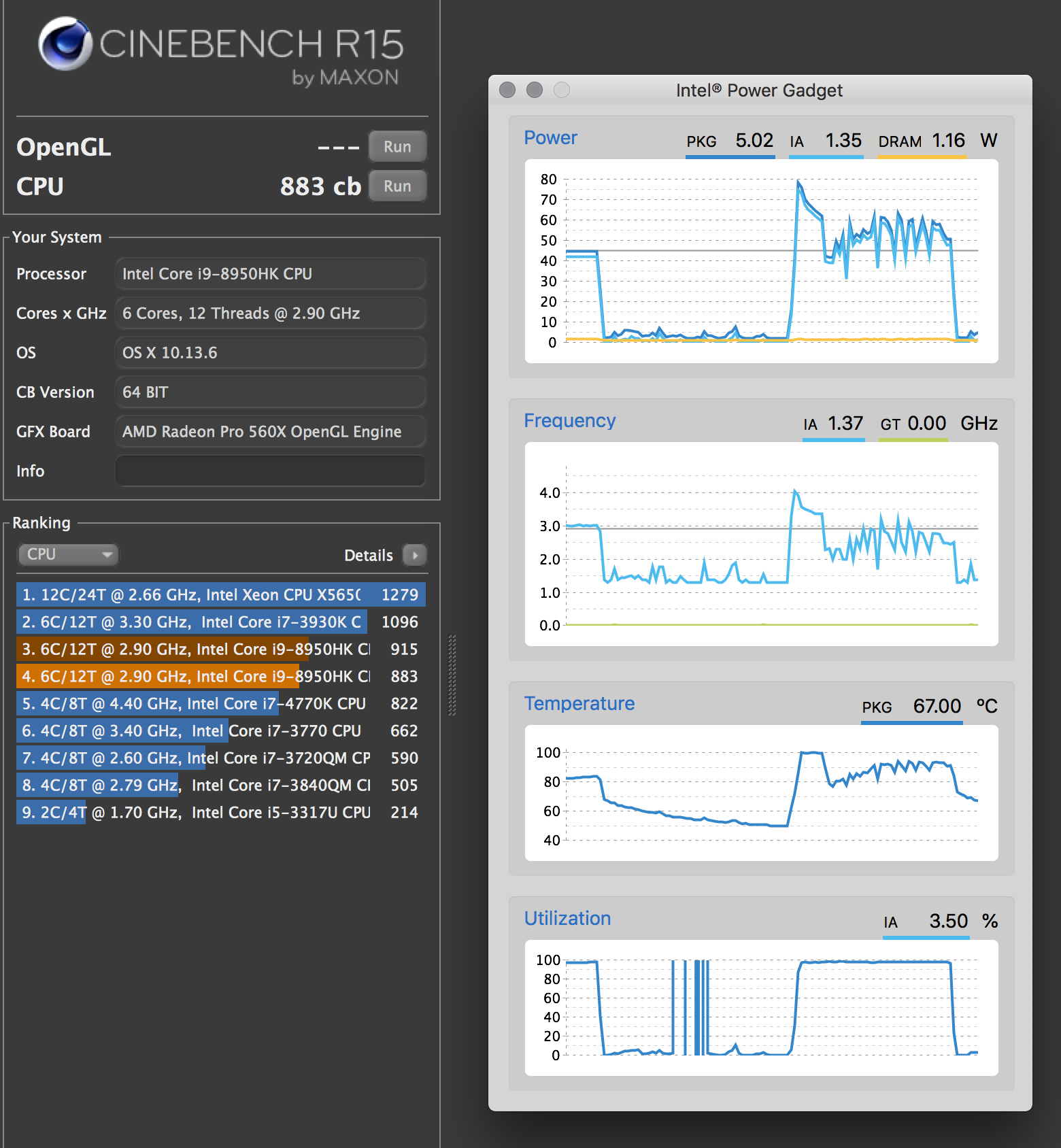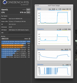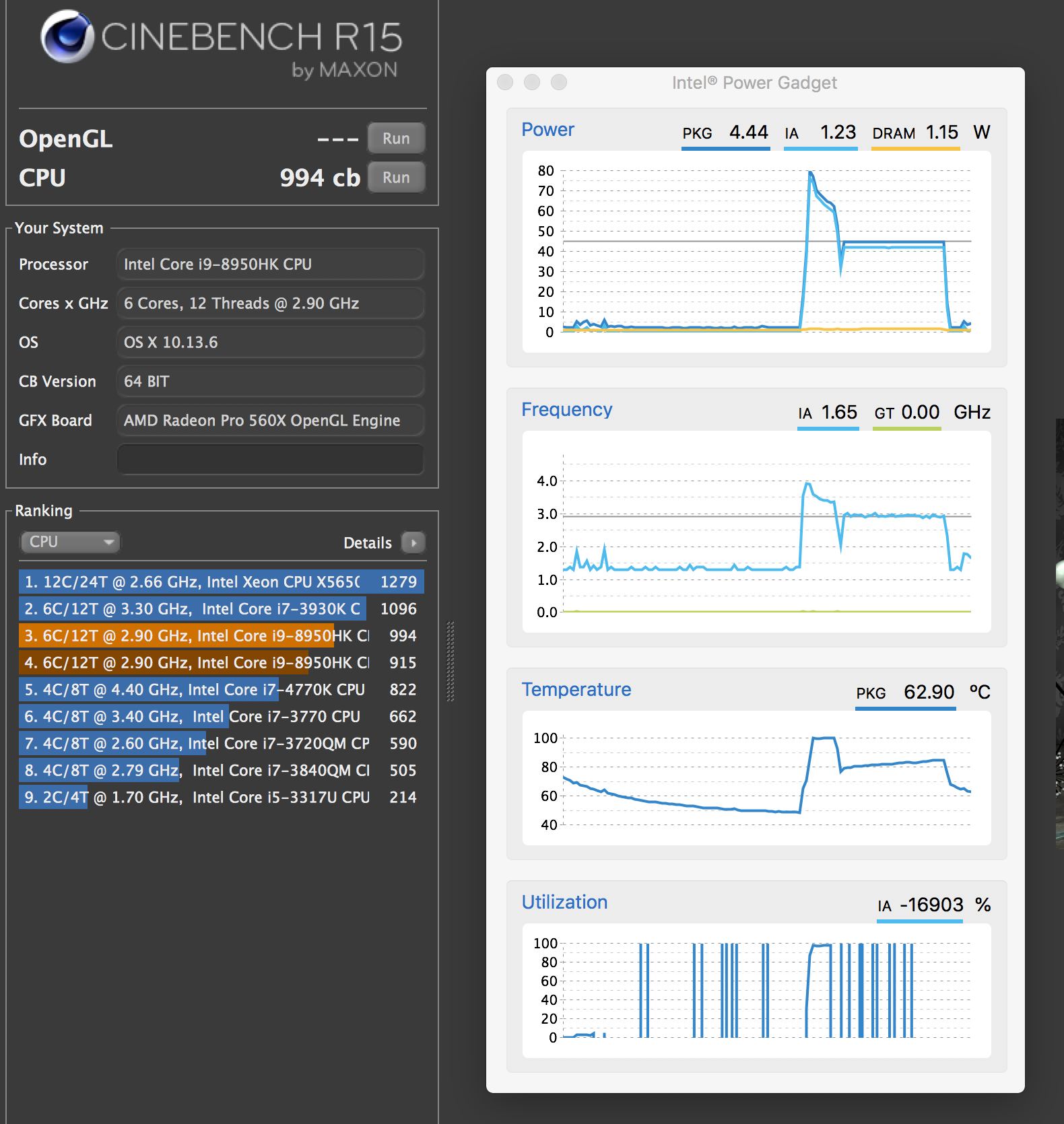 The result in cinebench with a fixed 45W limit looked very similar between the i7 and the i9.