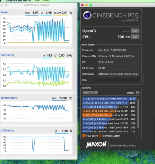 Here is a very good review. Compact but very informative.I have a MacBookPro15,1 (i9 with 32GB) and, amid so many facts and/or speculations (including the Intel Power Gadget utility download link removed), I looked into an alternate test.