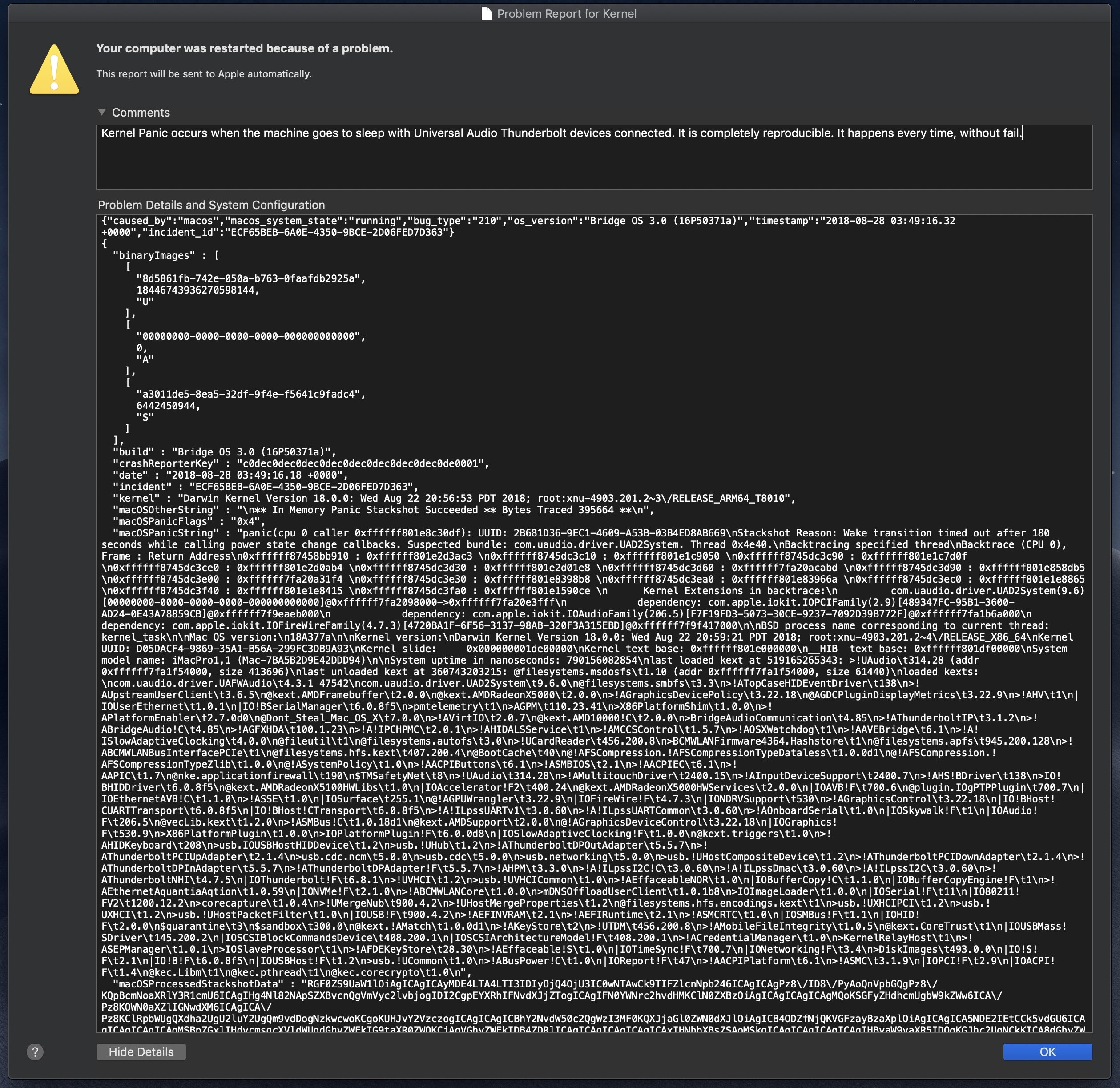 I kinda jinxed myself saying I haven’t had any issues with the replacement unit, but I am not sure it’s a T2/BridgeOS error this time either since no reports where generated.