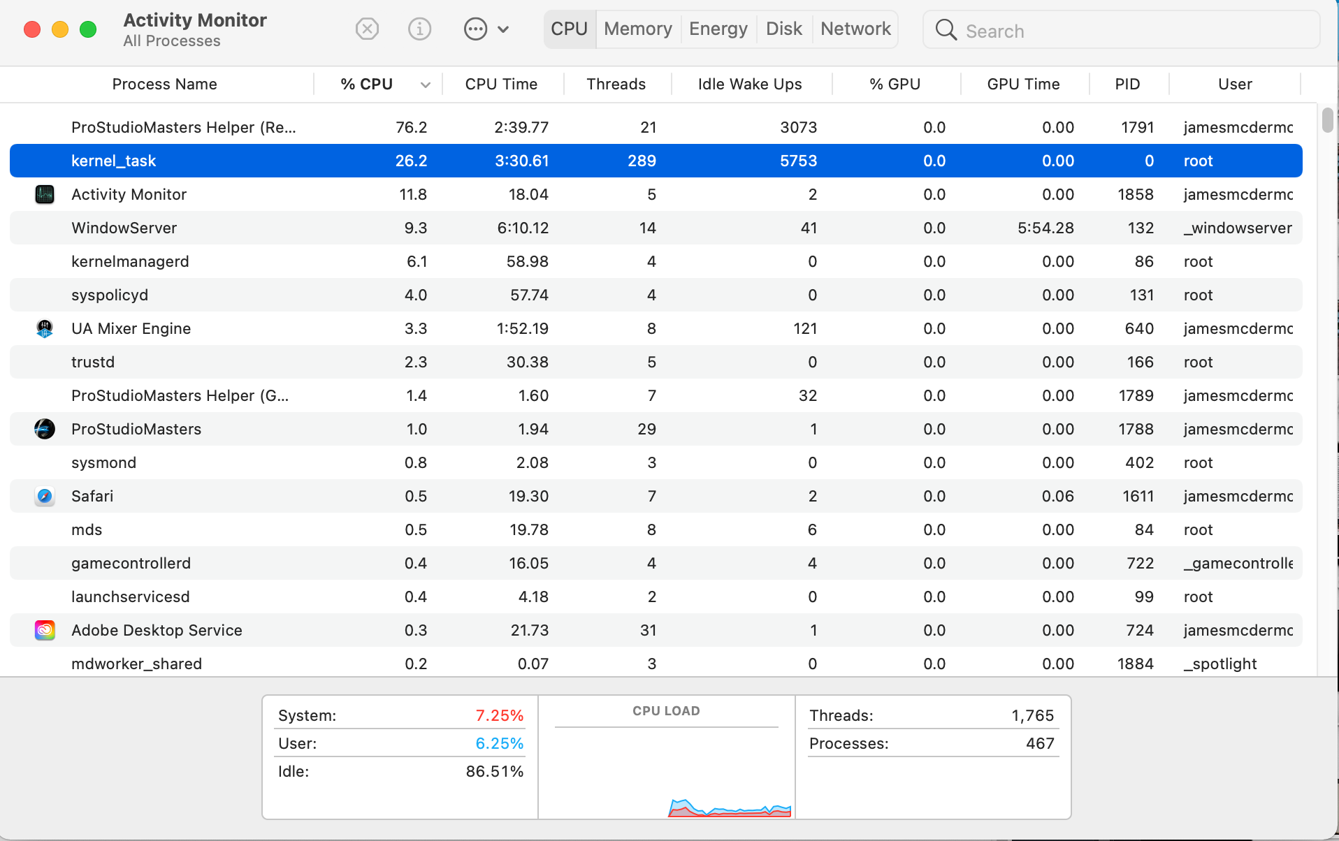 Showing just current user but there are no other users. Thought it might be kernel task but that never really goes that high, certainly not over 100% like some other users have posted with kernel task issues.