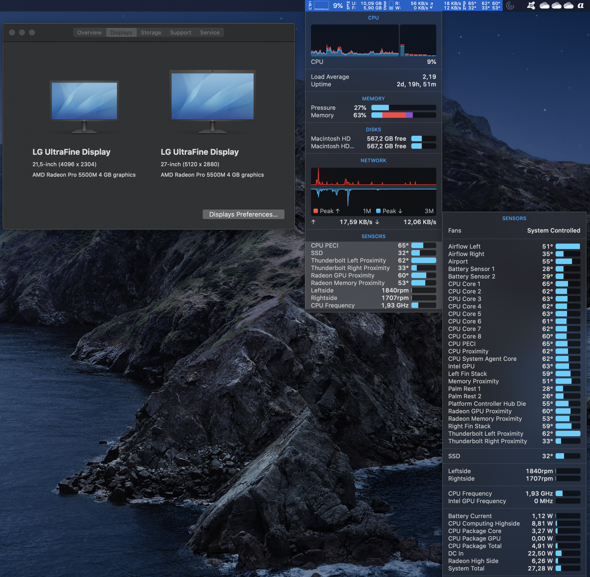 I've got the eGPU (charger) and Caldigit connected to the right, and an LG 5k connected to the left. Temps stay mid-range. Switching it around would bring the left side Thunderbolt to higher figures, which affects the temp readings and fan curves quite significantly. But I can't demonstrate it with numbers anymore, haven't got iStat installed. It works now, so no need to touch it. But I'll still hang around here for general interest.
